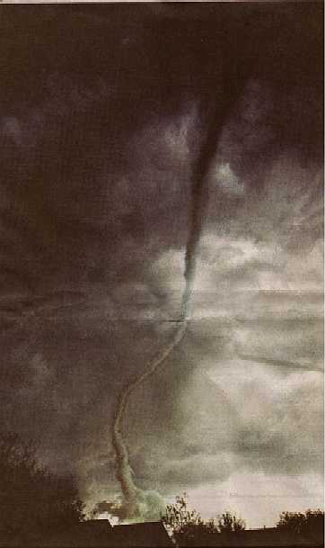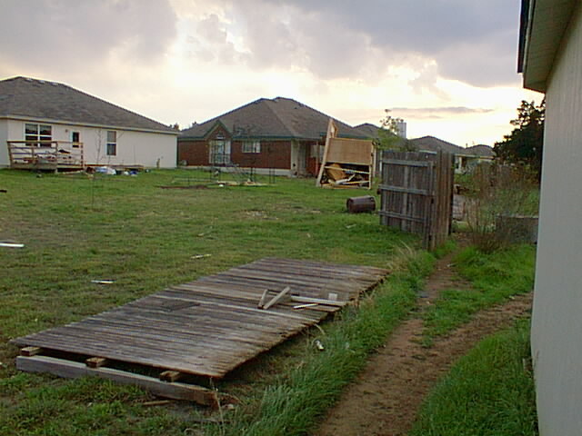 Peter Yang photographed the funnel cloud from Blockhouse Creek (about 3 miles away) as I stood directly underneath looking straight up into the bottom of the funnel shortly before it made contact with the ground. The funnel's base was rotating very slowly and drifting slowly northeast. Once the funnel became a tornado (contact with the ground) it followed a south southwestern track through Mason Creek. I was standing on my front porch when the tornado reached our house. Using the Enhanced Fujita Scale table below as a guide, it appears that we received EF-0 to EF-1 level damage. The houses behind ours sustained worse damage closer to EF-2 levels and also a storage building was blown into a neighbor's backyard.